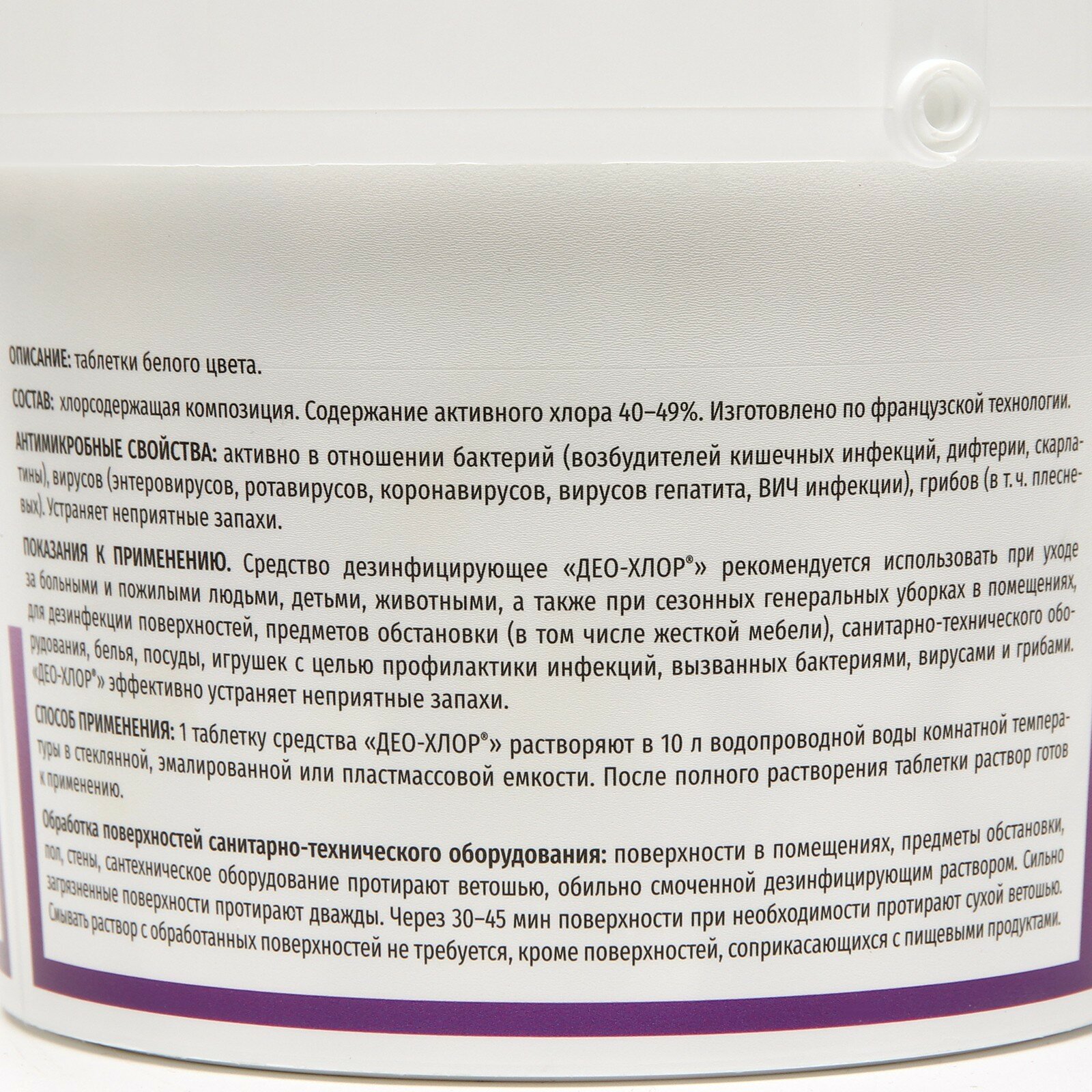 Дезинфицирующее средство Део-Хлор санитека, 250 таблеток по 3,4 г, информация: