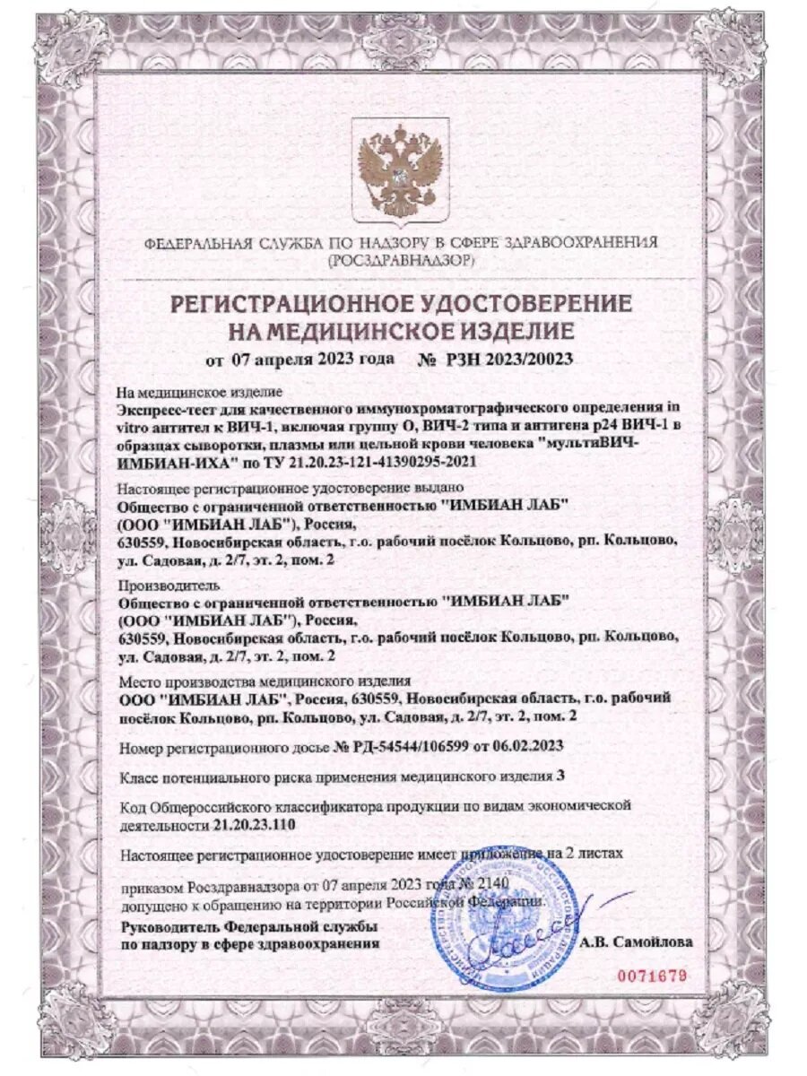 Имбиан Экспресс-тест на Вич 1/2 и Спид, анонимная упаковка информация: