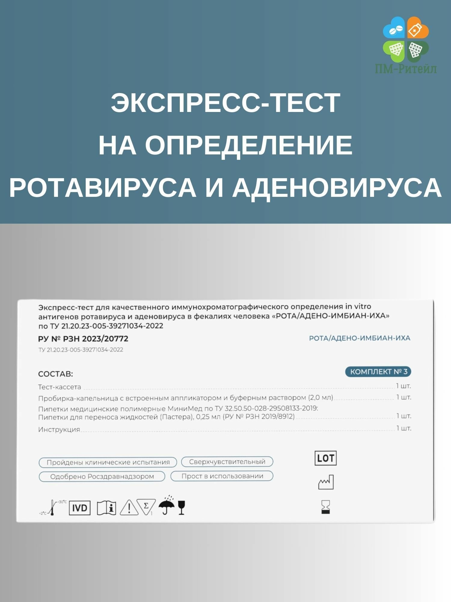 10 цен на Тест-экспресс для качественного ИХ определения in vitro в фекалиях человека комплект 3 Рота/Адено Имбиан-ИХА