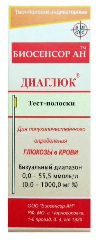 Тест-полоски Диаглюк №50 на глюкозу в крови информация: