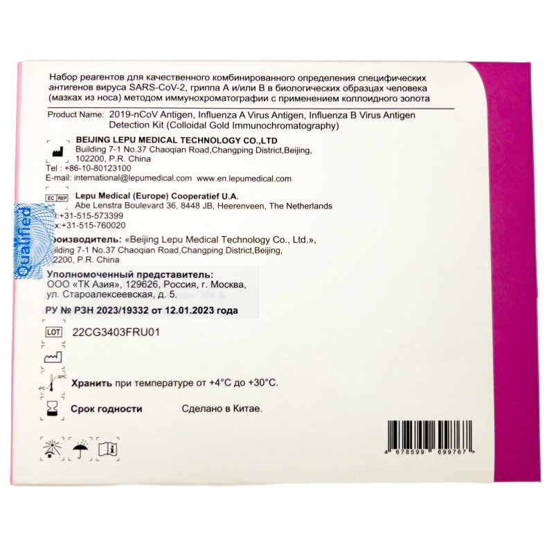 Тест Экспресс на антиген 2в1, Covid-19+грипп А/В Leccurate (1 шт.) информация: