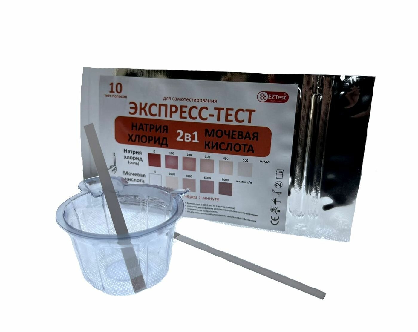 10 цен на Тест-полоски 2 в 1 индикаторные для полуколичественного анализа мочевой кислоты и натрия (соль) в моче, тест на подагру