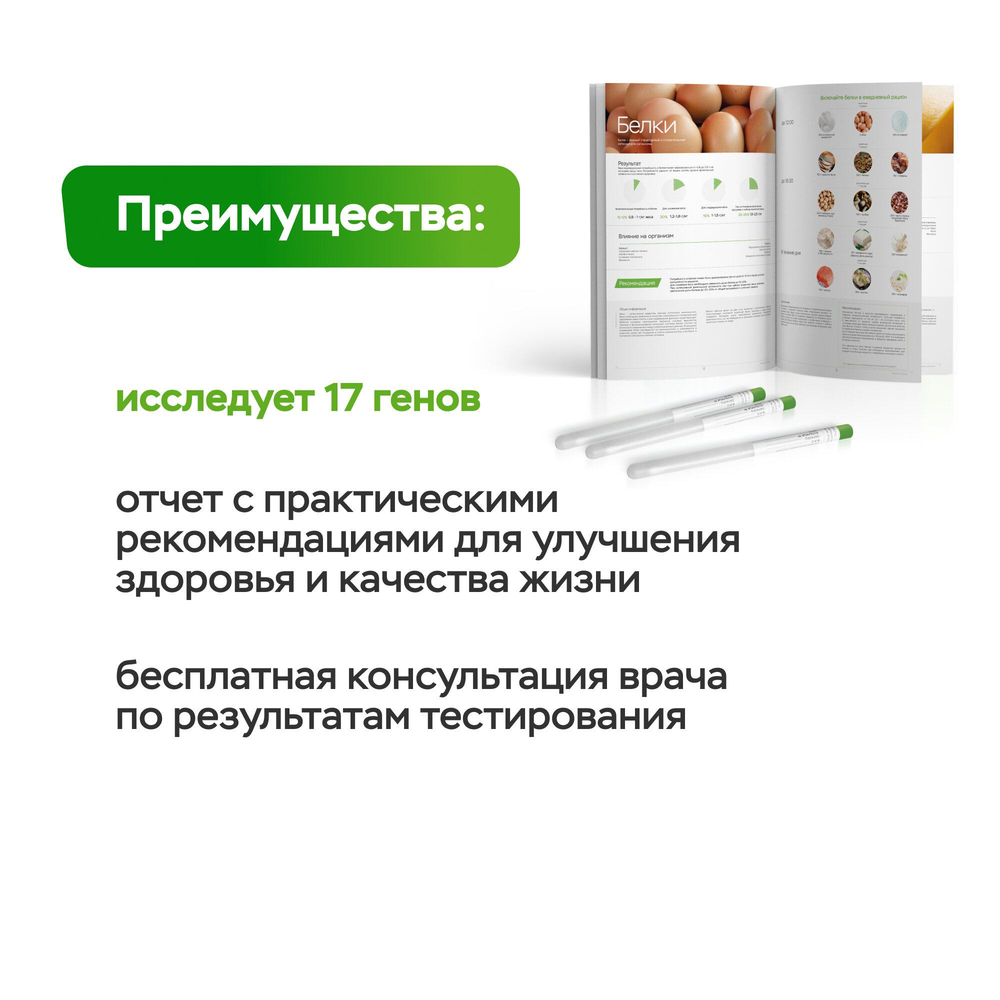 | Комплектность | набор для сбора генетического материала, ДНК-отчет с практическими рекомендациями |
