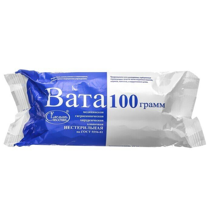 10 цен на Вата медицинская нестерильная "Емельянъ Савостин", хирургическая, 200г