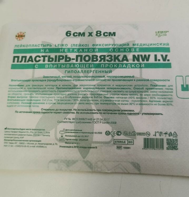 Отзывы на Повязка на рану пластырн типа Leiko NW I.V. (основа нетканая) с впит прокл пластырь-повязка 6х8 см (инд уп-ка)