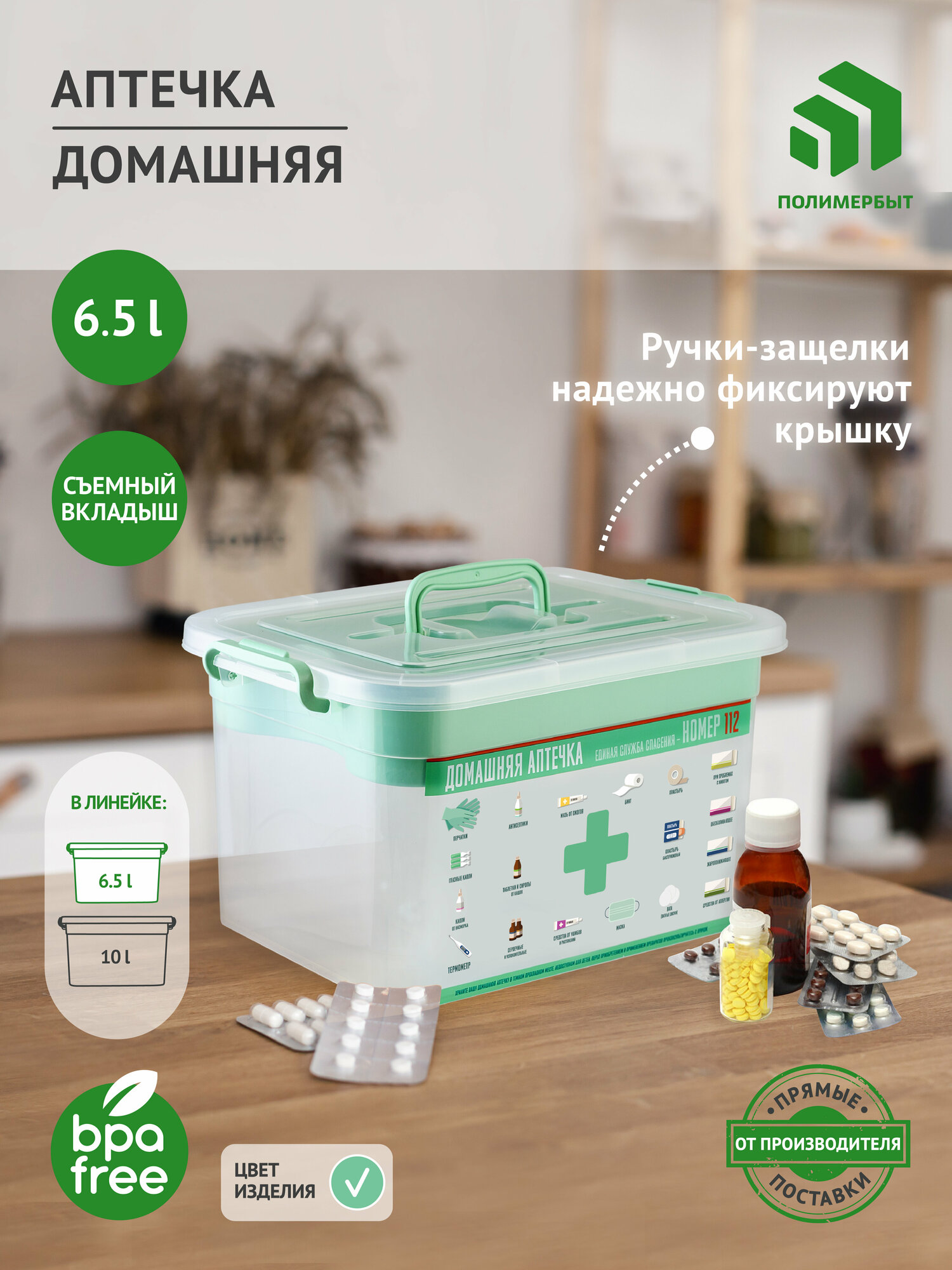 Аптечка ПОЛИМЕРБЫТ Домашний доктор с вкладышем зеленый, 6.5 л