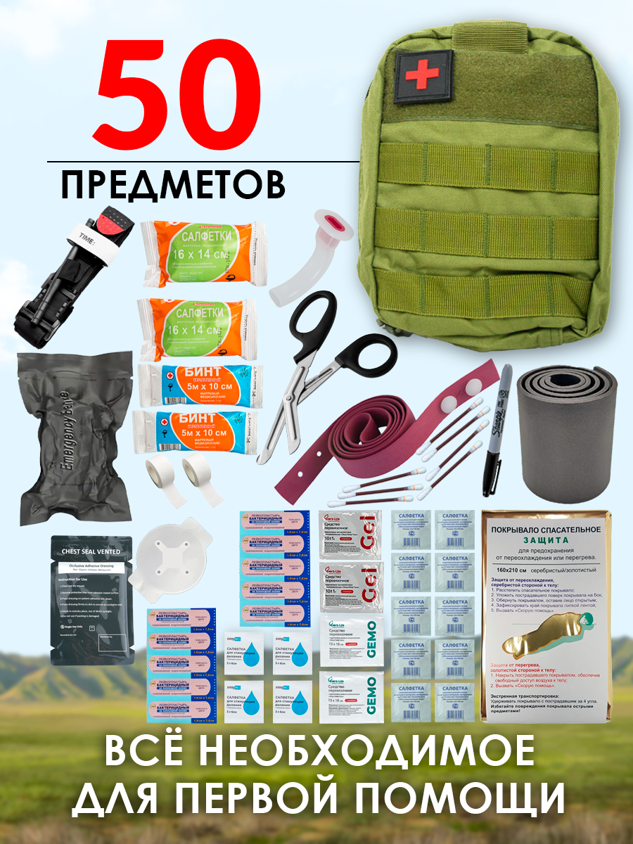10 цен на Аптечка тактическая укомплектованная 50шт олива