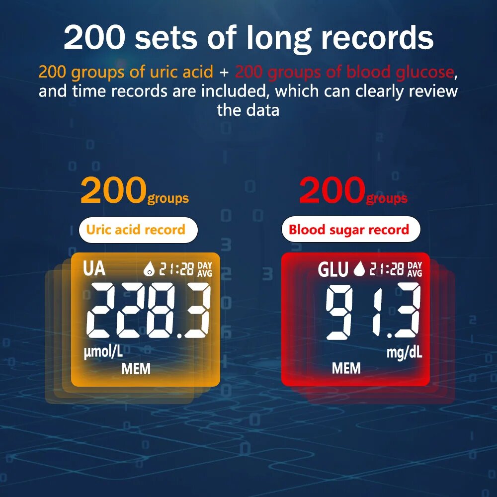 Измеритель мочевой кислоты и уровня глюкозы в крови, 2 в 1 информация: