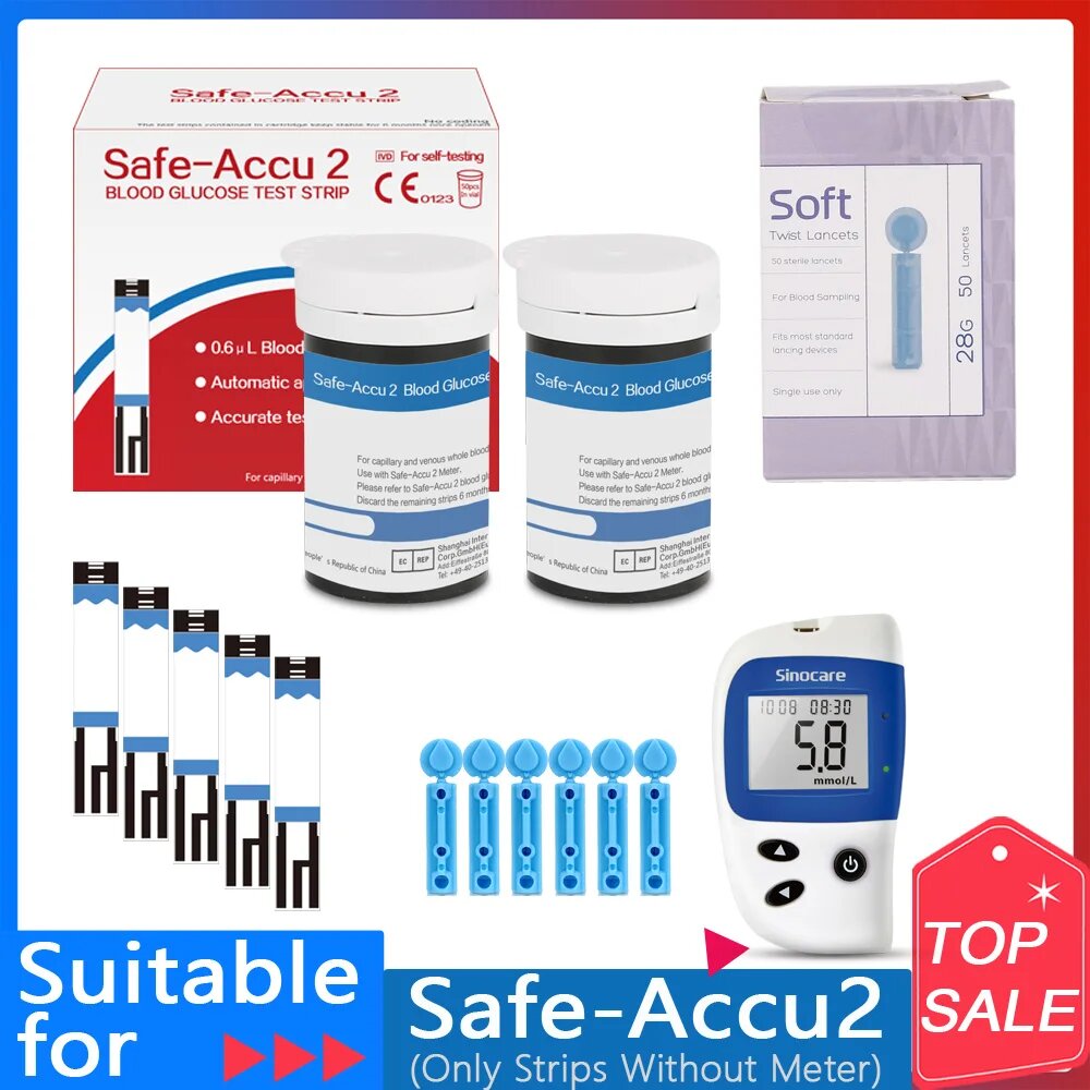 10 цен на Sinocare Safe Accu2 50/100/200 шт тест-полоски для глюкозы в крови с 50/100/200 шт ланцеты иглы для определения уровня глюкозы в крови