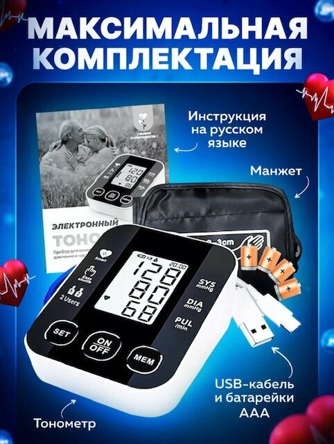Автоматический медицинский тонометр на плечо с индикатором аритмии и русским голосовым сопровождением информация: