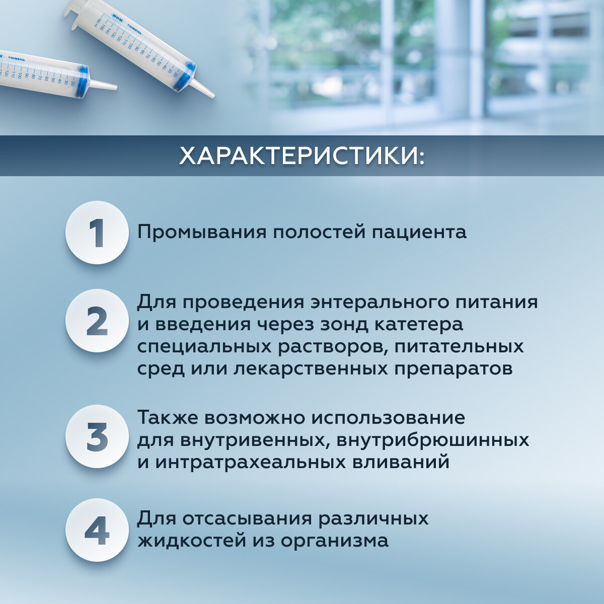Шприц жанэ одноразовый 150 мл, 3-х детальный, с катетерной насадкой информация: