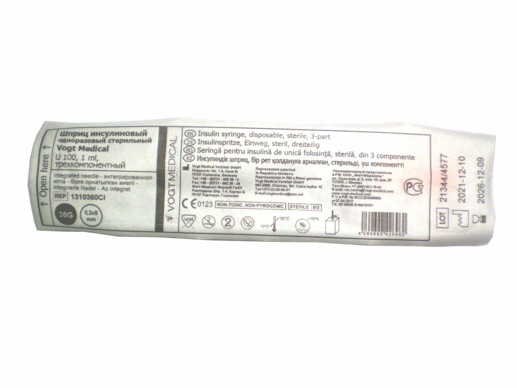 Отзывы на Шприц инсулиновый Vogt Medical 1мл U100 c иглой 30G*8мм интегр., 25 шт.
