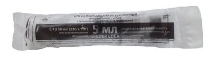 Шприц LEIKO медицинский 5 (6) мл, игла LUER lock 0,7 х 38мм (22G x 1½"), полибэг, 100 шт. информация: