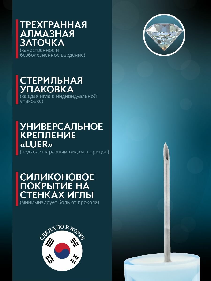 Игла инъекционная 100 шт/уп, 34G (0,18 х 4 мм), DIAMOND NANO NEEDLE информация: