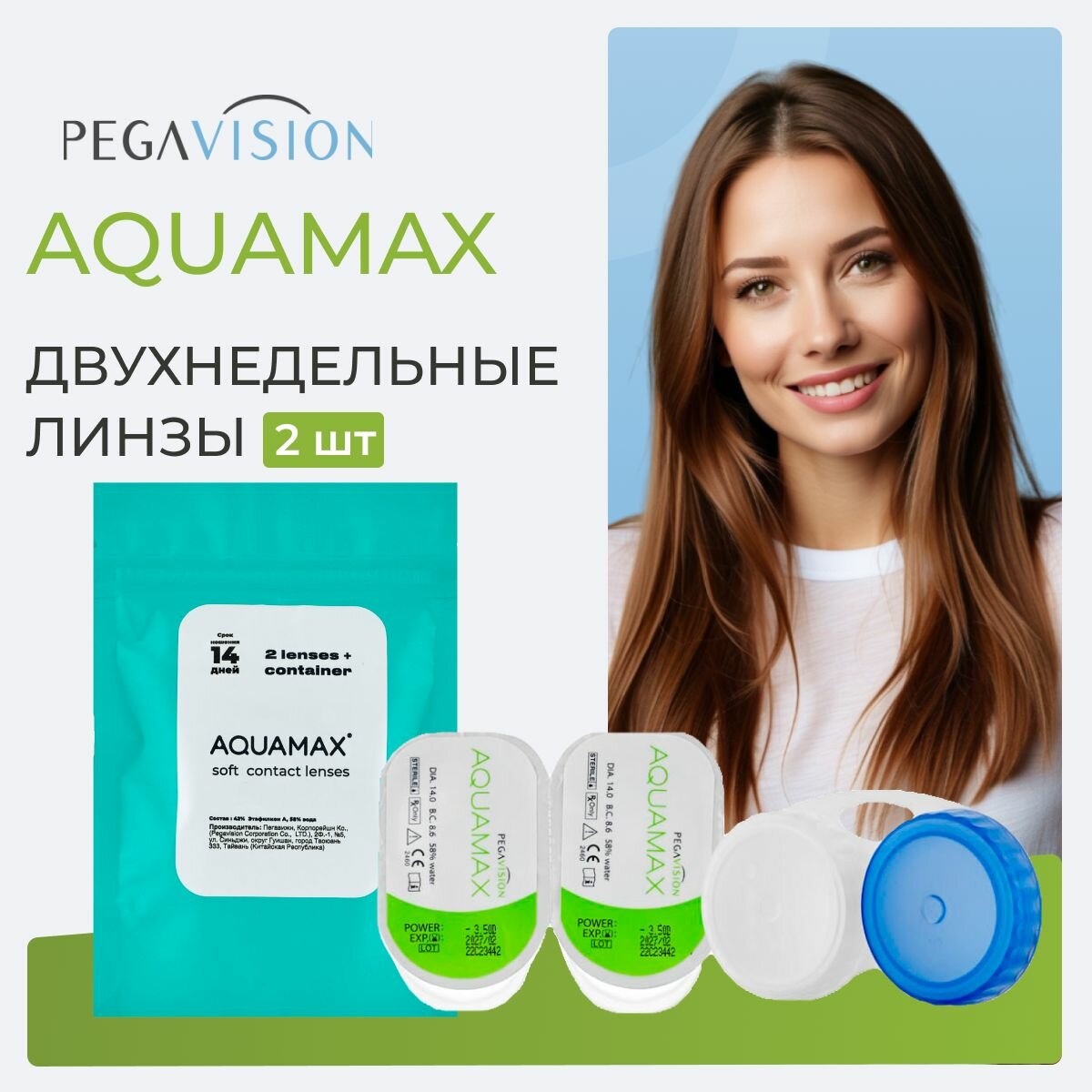 Контактные линзы Pegavision Aquamax 14.0, 2 шт., R 8,6, D -7 информация: