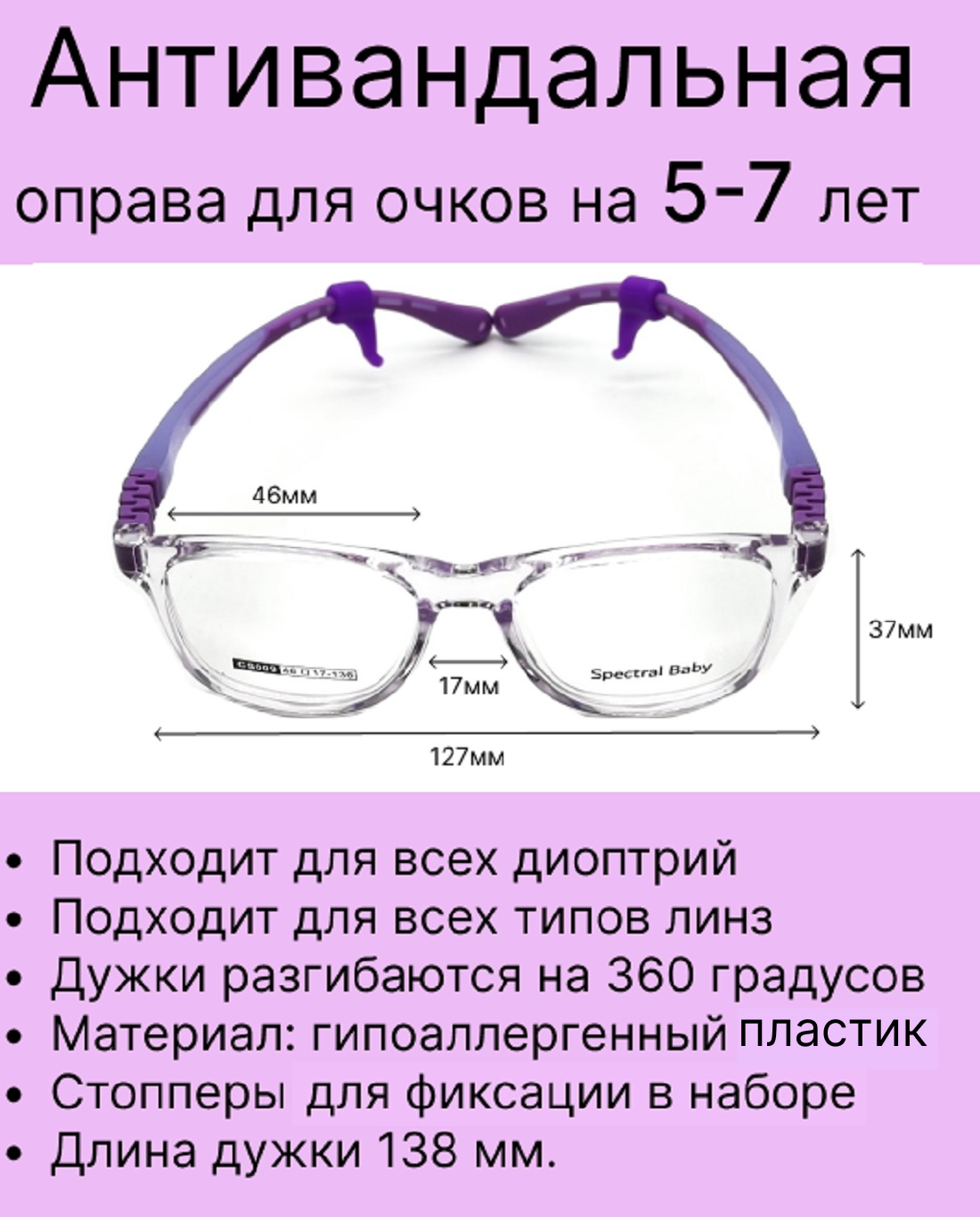 Антивандальная детская оправа для очков на 8-12 лет информация: