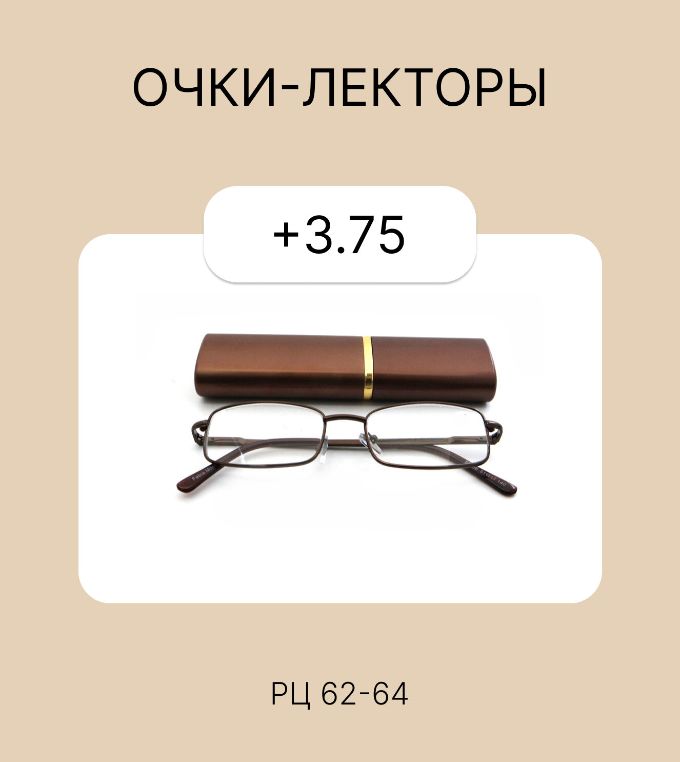 Очки-лектор с футляром, коричневые, для чтения, +3.75, РЦ 62-64 информация: