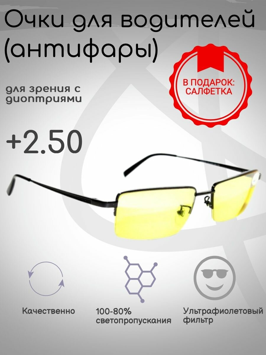 Готовые очки для зрения +2.50, антифары, для вождения информация: