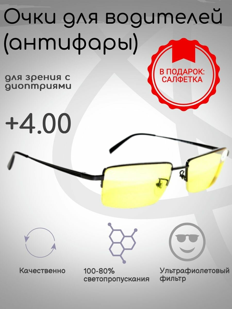 Готовые очки для зрения +4.00, антифары, для вождения информация: