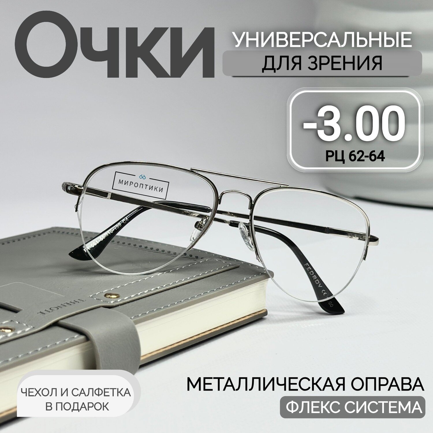 Очки для зрения Fedrov 561 серебро, авиаторы, для дали с диоптриями -3.00 (чехол и салфетка в подарок) информация: