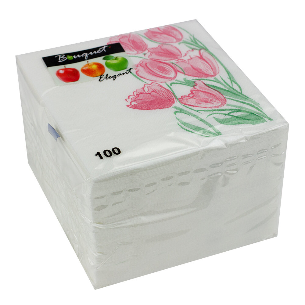 Салфетки бумажные BOUQUET Elegant 100шт 1слой Розовые тюльпаны 24*24 см информация: