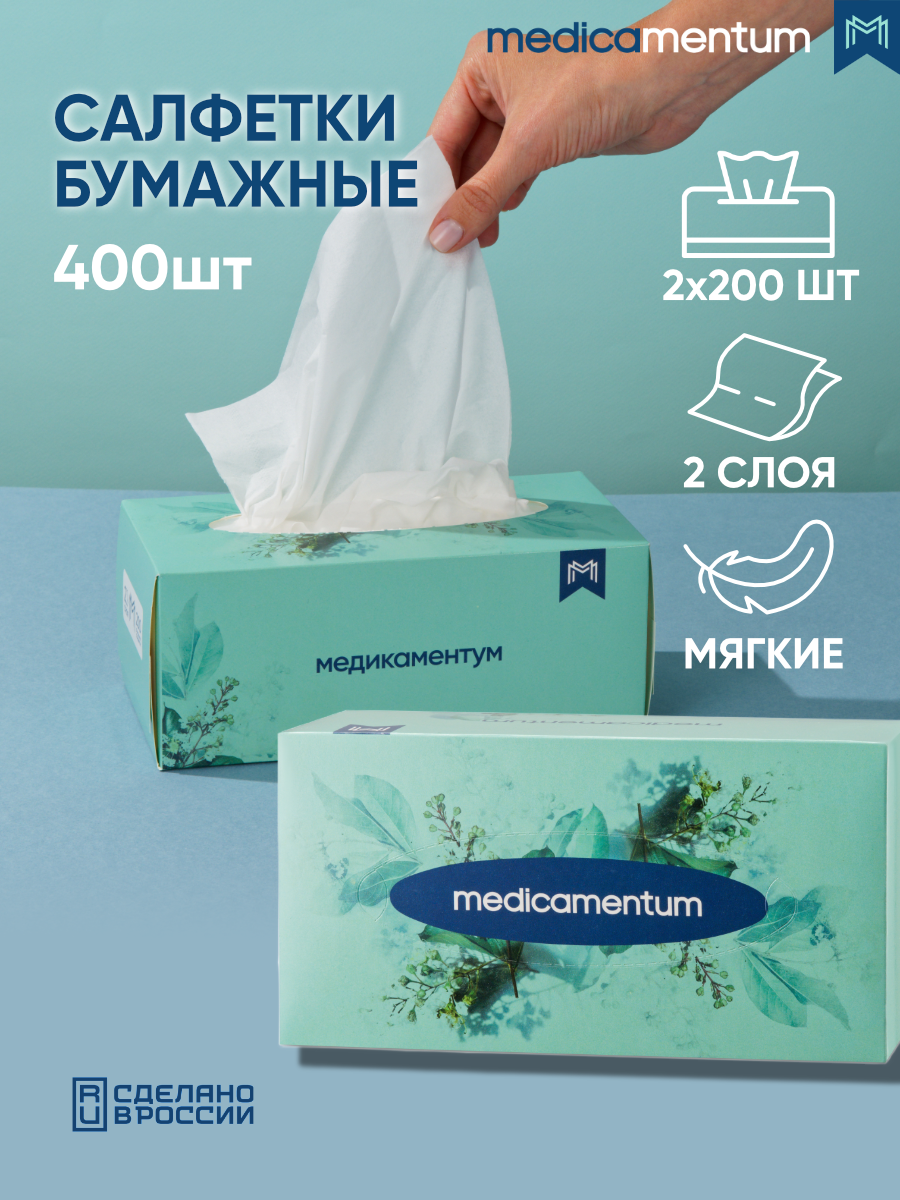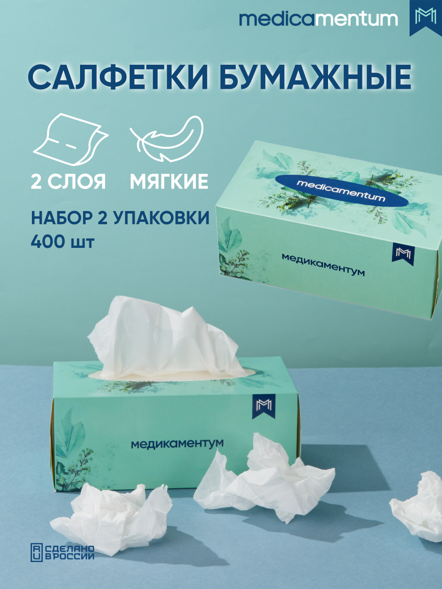 Салфетки бумажные в коробке 2 упаковки по 200 шт всего 400 шт набор салфеток для дома и ухода информация: