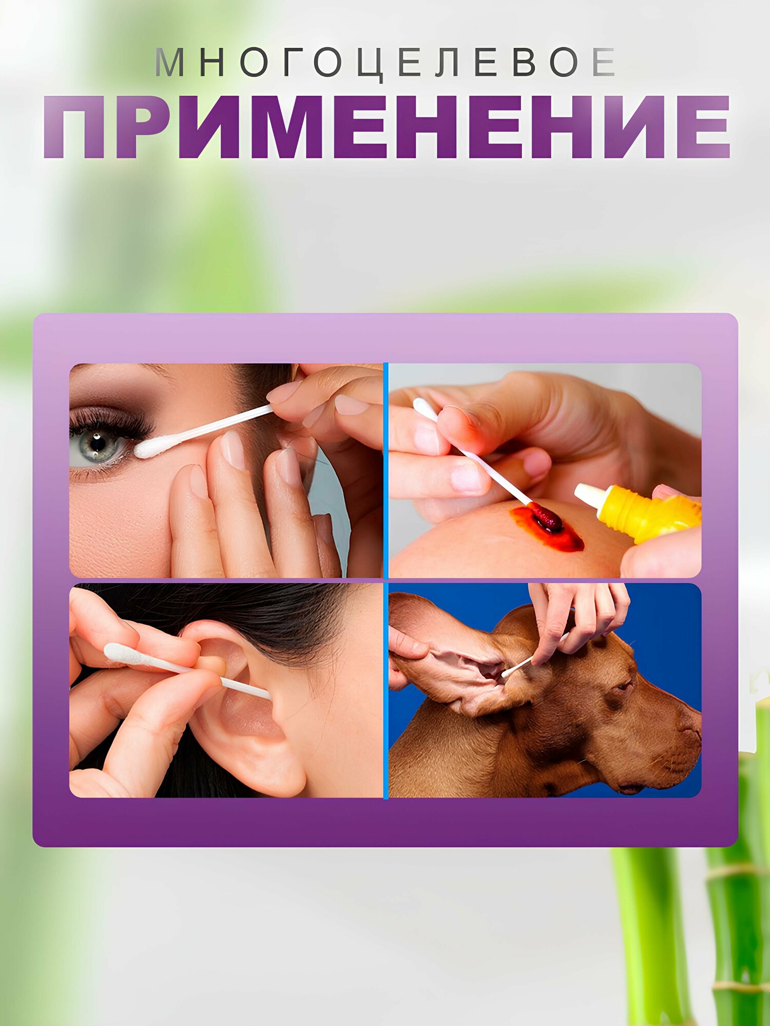 Ватные палочки бамбуковые ( 1000 шт). ЭКО бамбуковые палочки 100% хлопок информация: