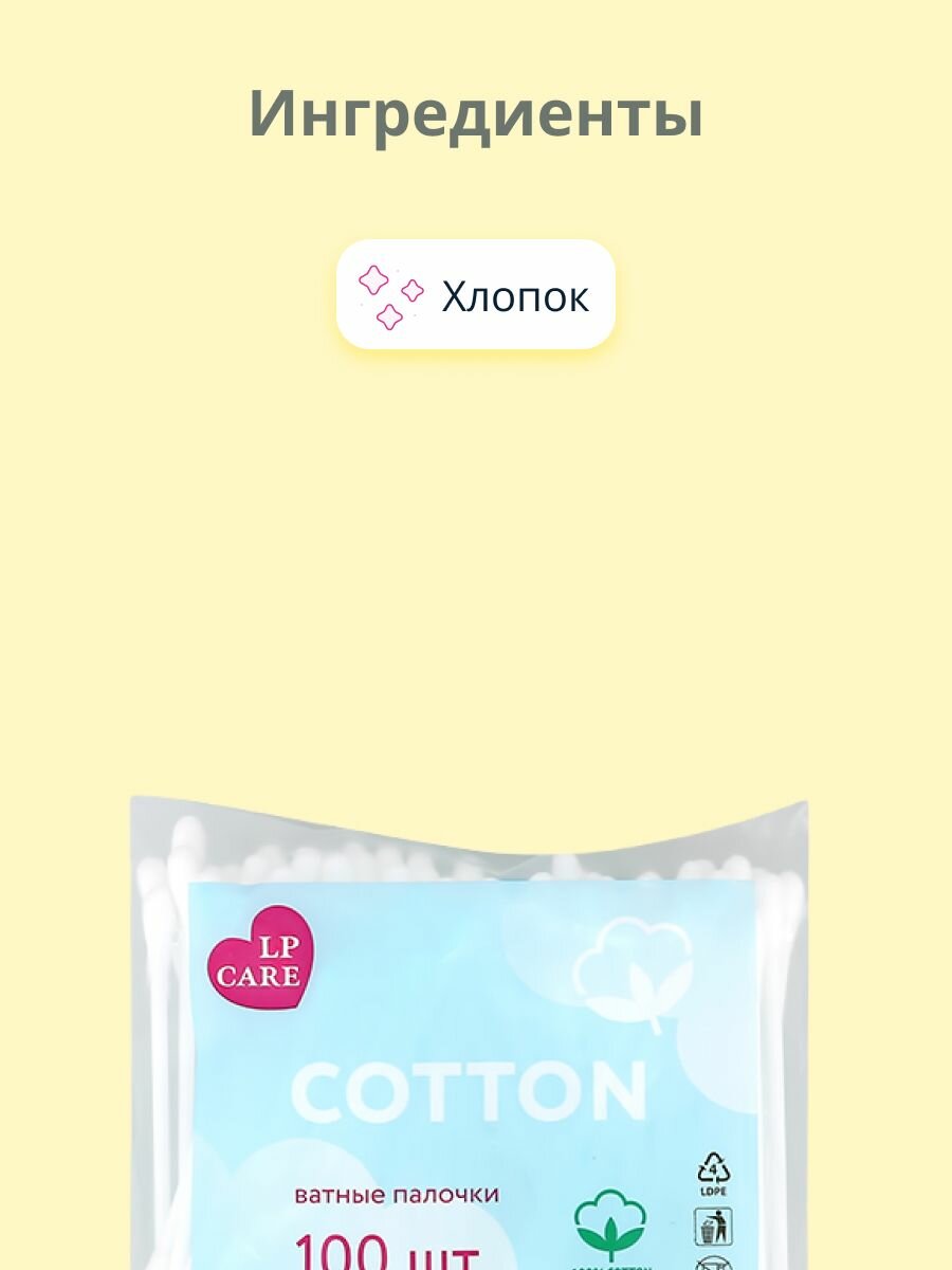 Палочки ватные LP CARE в пакетике 100 шт информация: