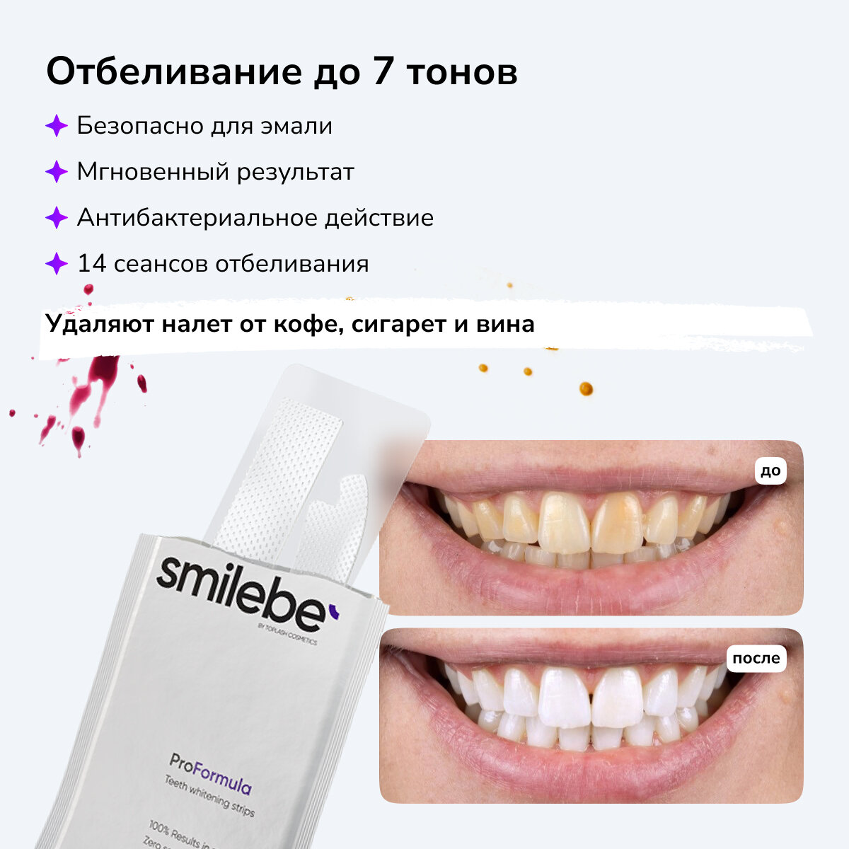 10 цен на Отбеливающие полоски для зубов Smilebe, 28 полосок на 14 дней. Teeth whitening Strips ProFormula (14 pcs)