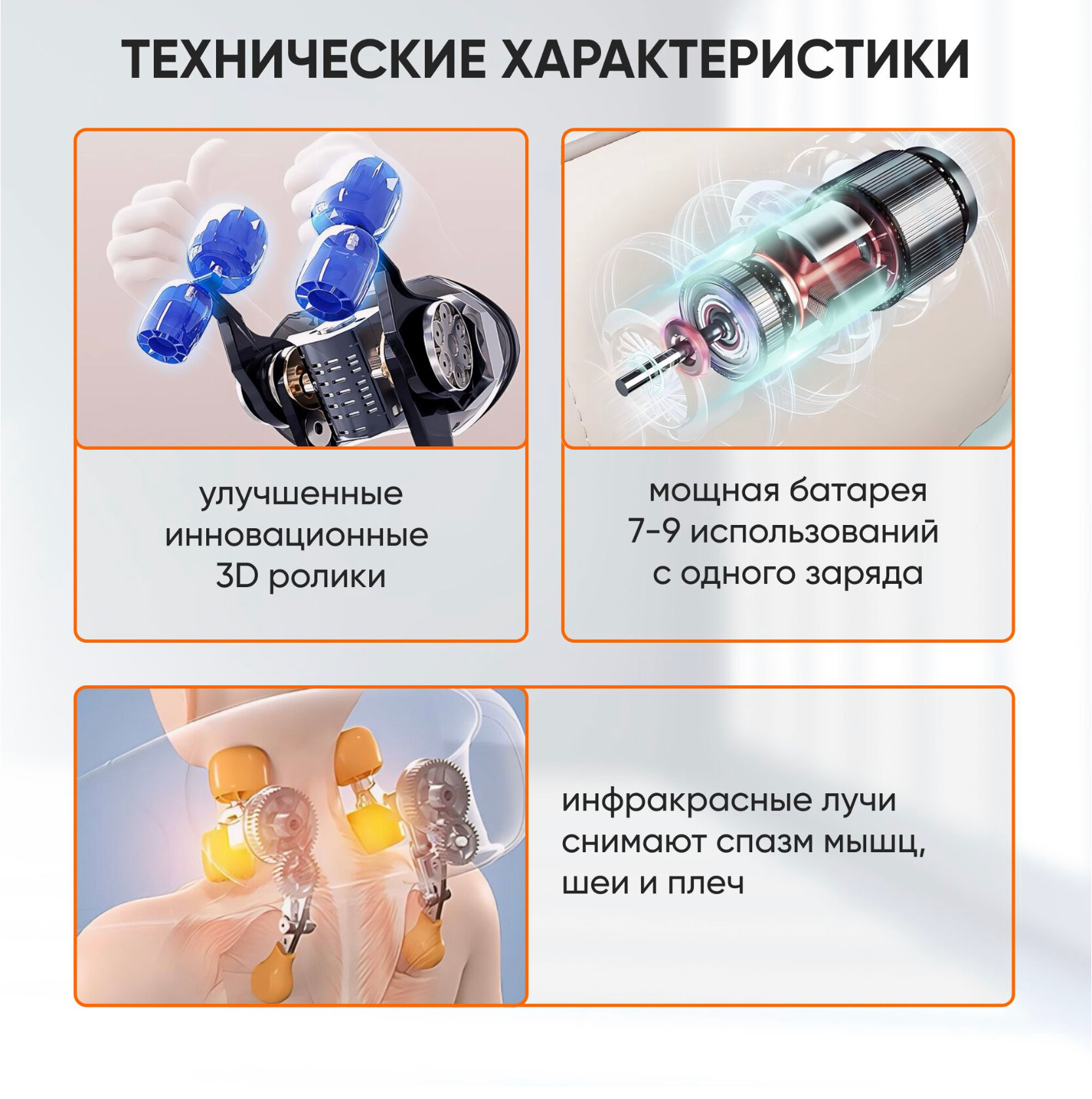 Премиум Массажер для шеи и плеч, тела, спины, беспроводной, с ИК прогревом, многофункциональный.