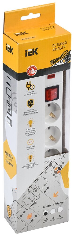 Сетевой фильтр Iek СФ-05К 1.5м (5 розеток), белый 1 407 ₽