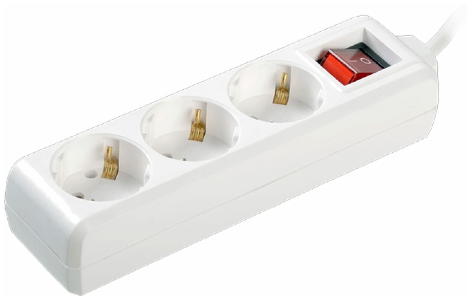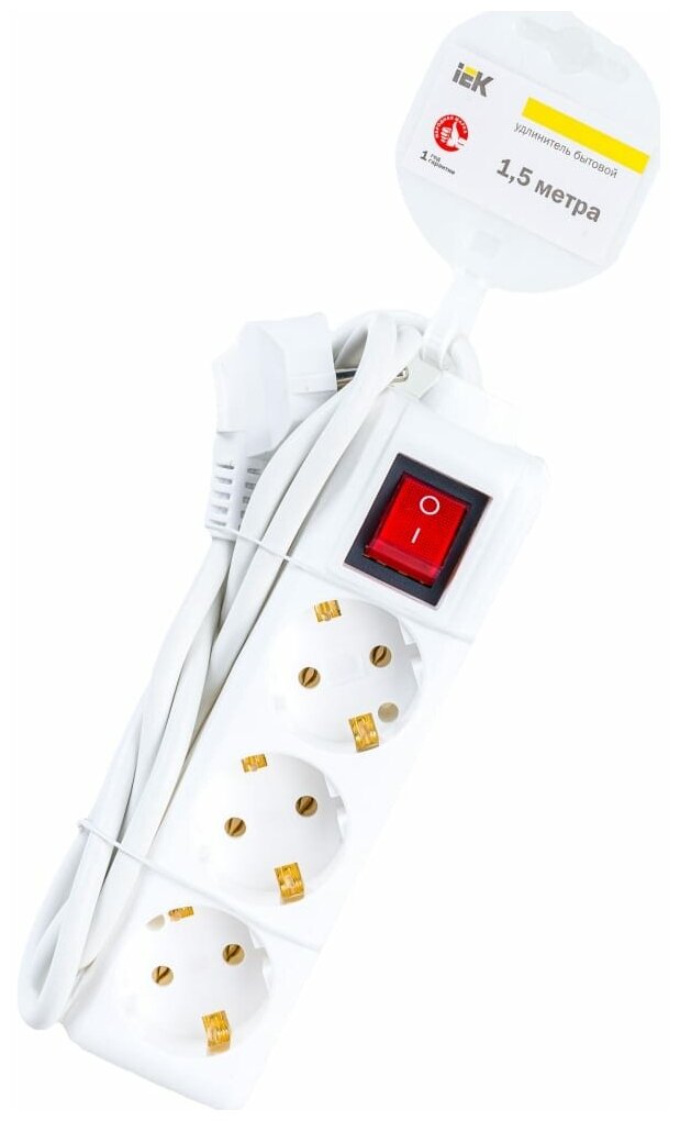 Удлинитель с выключателем IEK У03К-выкл, ПВС 3 x 1 мм², с заземлением, 3 розетки, 1,5 м, белый