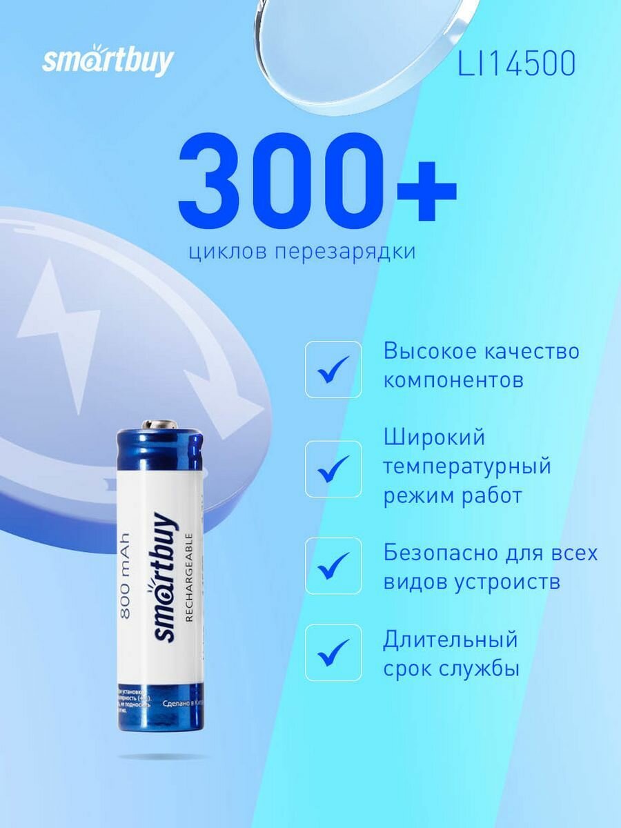 10 цен на Аккумулятор 14500 800 mAh 3,7V (50/400)