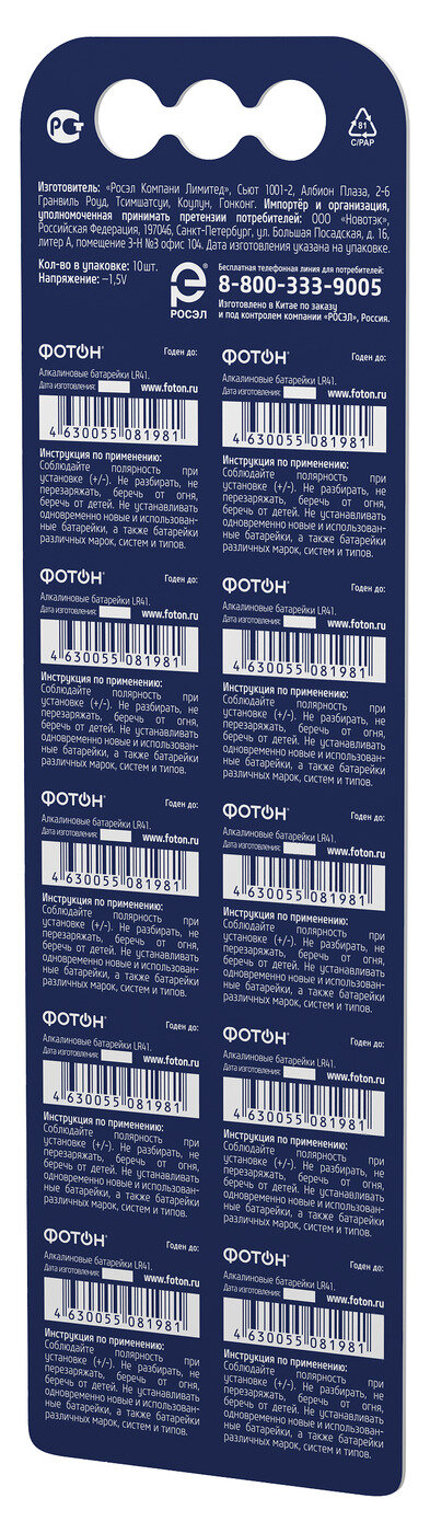 Мы выбрали 10 лучших цен на Батарейки фотон LR41 10 шт.. Перед тем как купить Батарейки фотон LR41 10 шт. посмотрите найденные предложения из Яндекс Маркета и других сайтов на основе XML фидов.