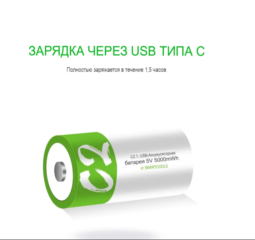 Smartoools Аккумуляторные перезаряжаемые батарейки Li-ion АА 1,5V 2600 mWh (2шт) с USB кабелем пальчиковые