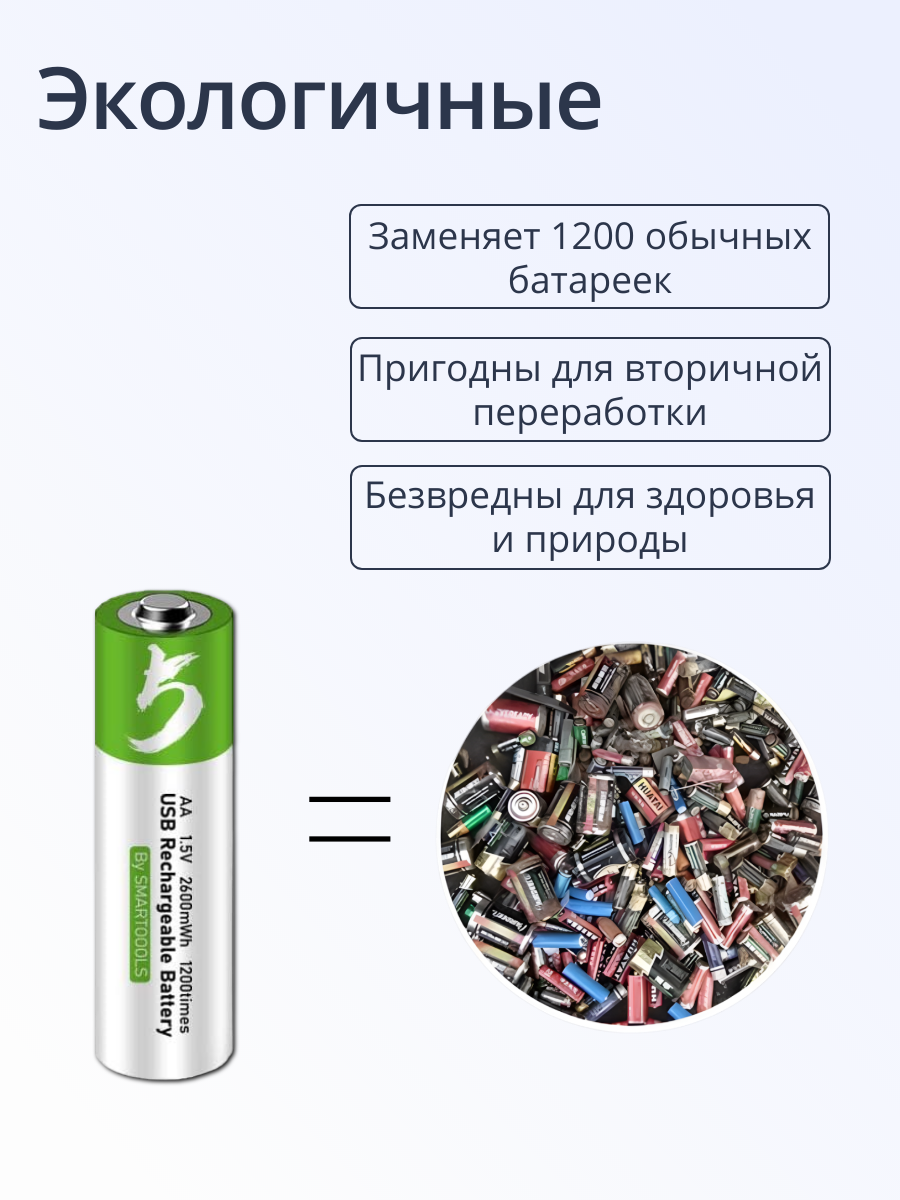 Аккумуляторные Батарейки LOTKEE, 3200mWh, AA, с USB зарядкой, 4шт