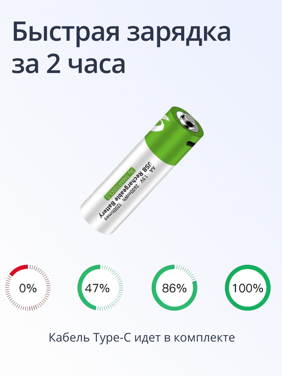 Отзывы на Батарейки ABC пальчиковые перезаряжаемые Тип АА, Емкость 2600 mWh, 2шт