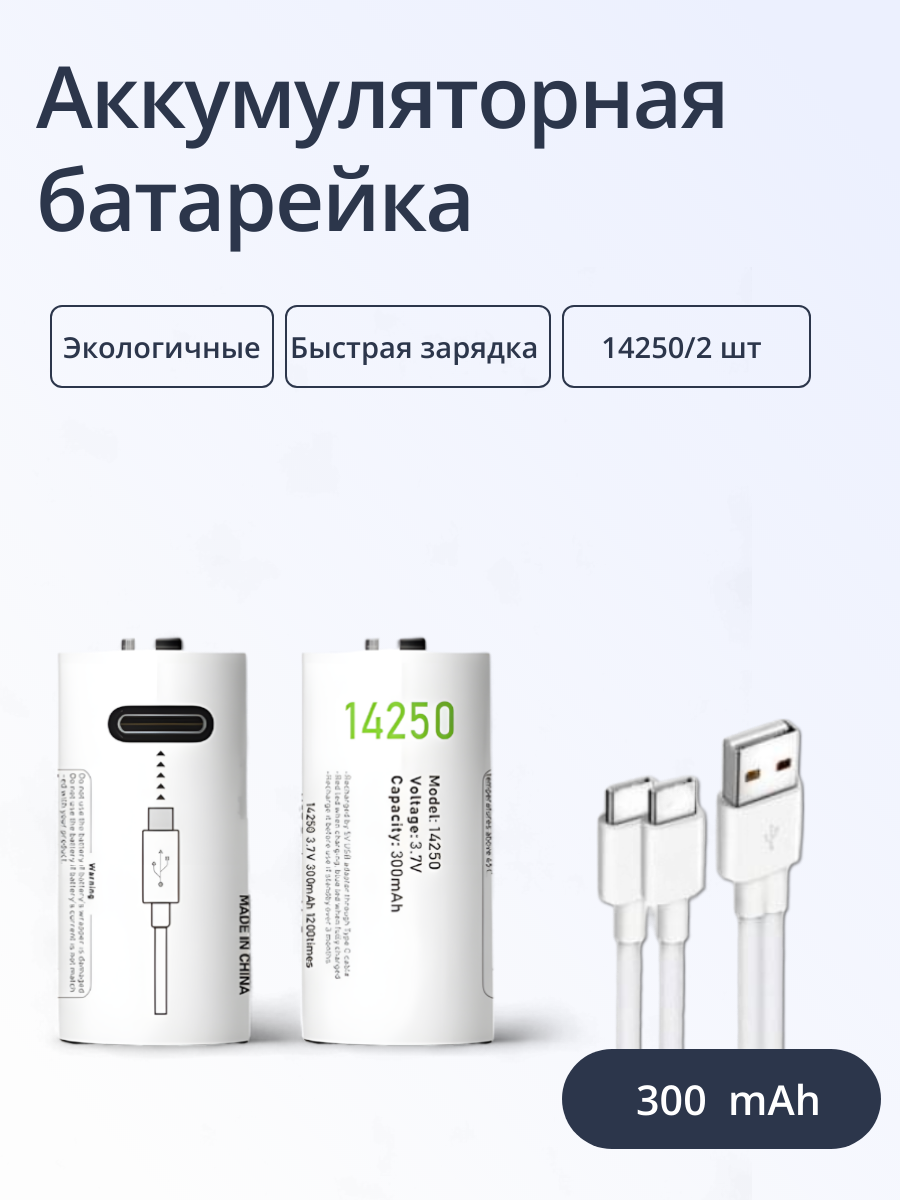Батарейки перезаряжаемые ABC Тип 14250, емкость 300mAh, 2 шт информация: