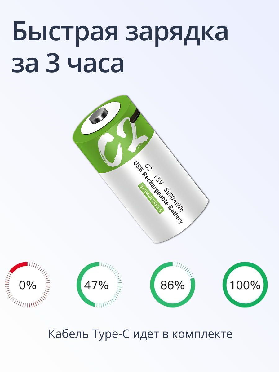 Отзывы на Аккумуляторная батарейка ABC Тип C перезаряжаемая, ёмкостью 5000 mWh, 1 шт