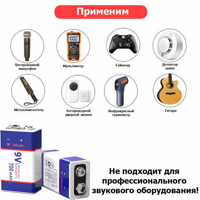 Аккумулятор Крона 9V 700mAh 6f22 2 штуки информация: