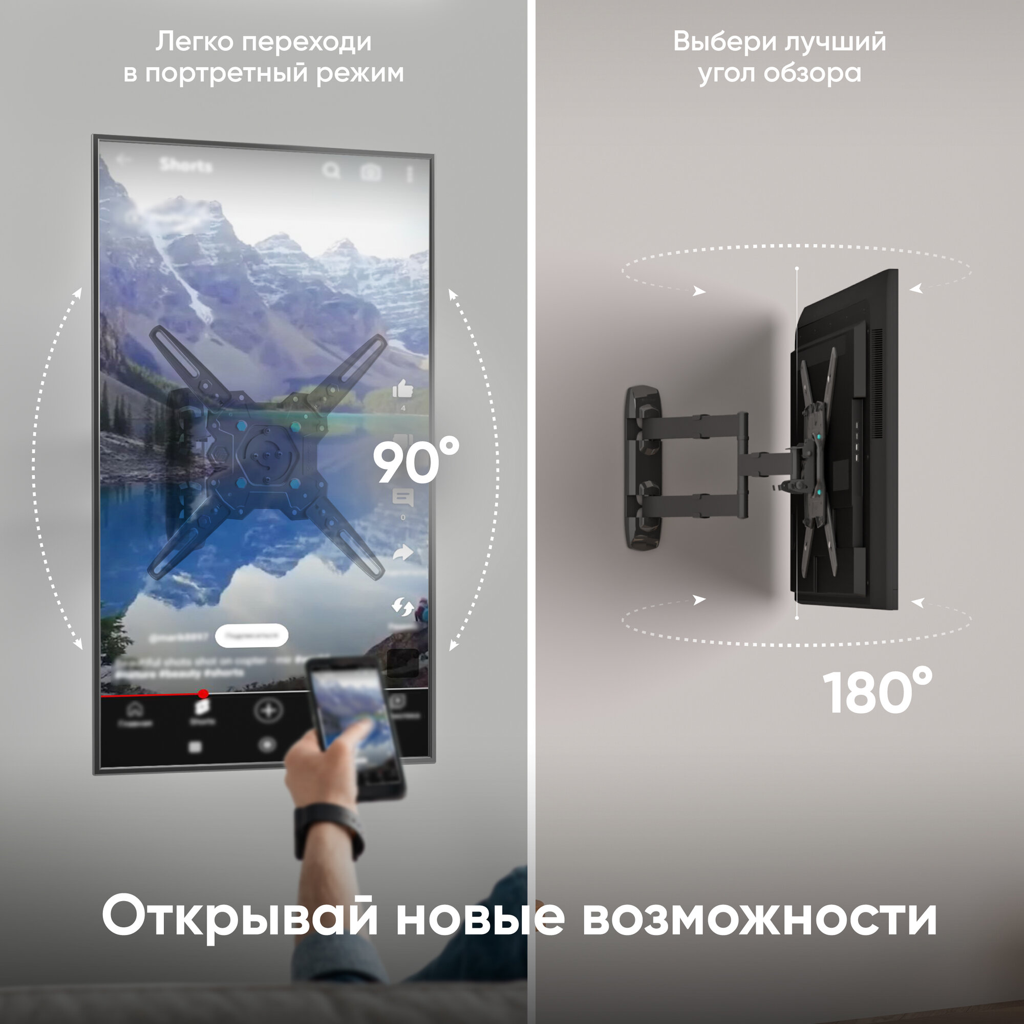 Отзывы на Кронштейн на стену ONKRON M4R для телевизора 32"-65", наклонно-поворотный, до 41 кг, черный