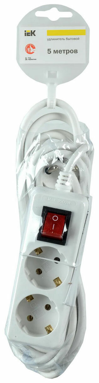 10 цен на Удлинитель IEK У02К-выкл. 2 места 2P PE/5 метров 3х1мм2 16А/250В WYP10-16-02-05-ZK-N