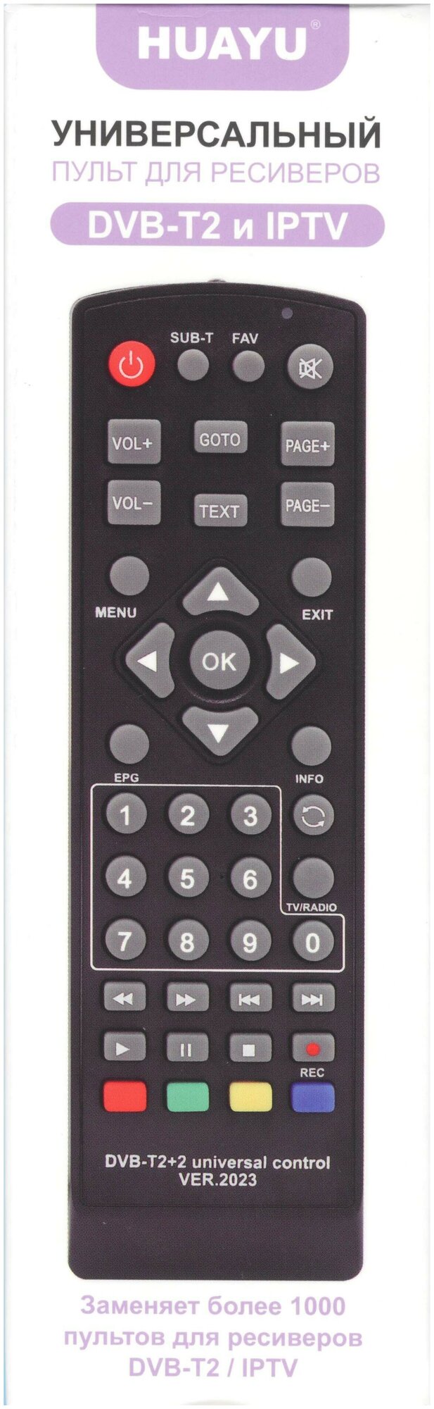 Универсальный пульт HUAYU DVB-T2+2 ! VER.2023 для всех DVB-T2 приставок и ресиверов информация:
