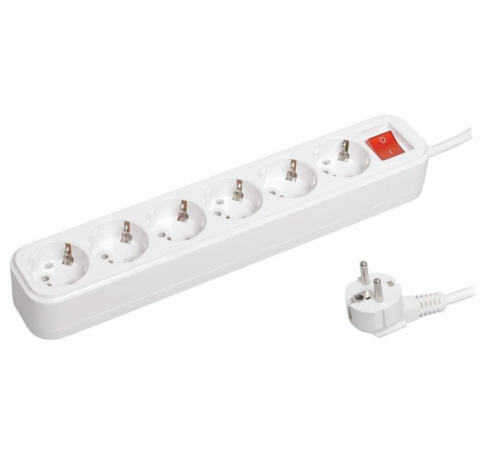 Удлинитель с выключателем IEK У06К-выкл, ПВС 3 x 1 мм², с заземлением, 6 розеток, 3 м, белый