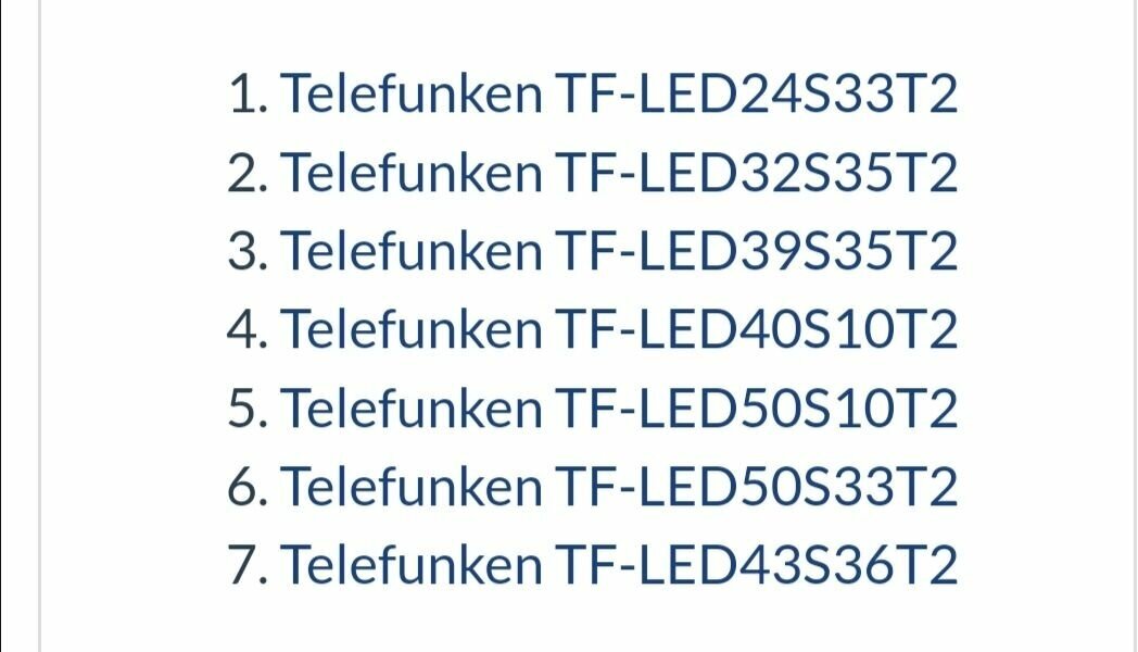 | Назначение | Fusion FLTV-32T24, TELEFUNKEN TF-LED24S33T2, TELEFUNKEN TF-LED32S35T2, TELEFUNKEN TF-LED39S35T2, TELEFUNKEN TF-LED40S10T2, TELEFUNKEN TF-LED50S33T2, TELEFUNKEN TF-LED50S10T2 |