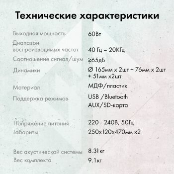 | Мощность фронтальных колонок в комплекте | 30 Вт |