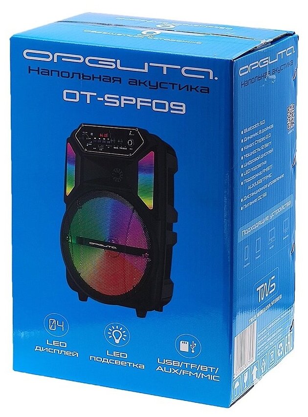 Портативная колонка Орбита OT-SPF09 / напольная акустика 12 Вт с аккумулятором и RGB подсветкой