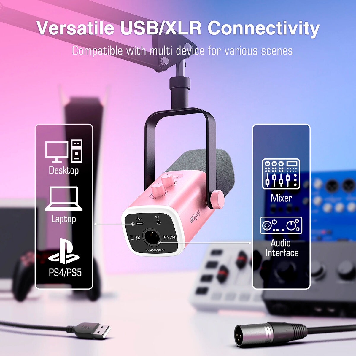 Динамический USB/XLR микрофон со стойкой Fifine AM8TP розовый информация: