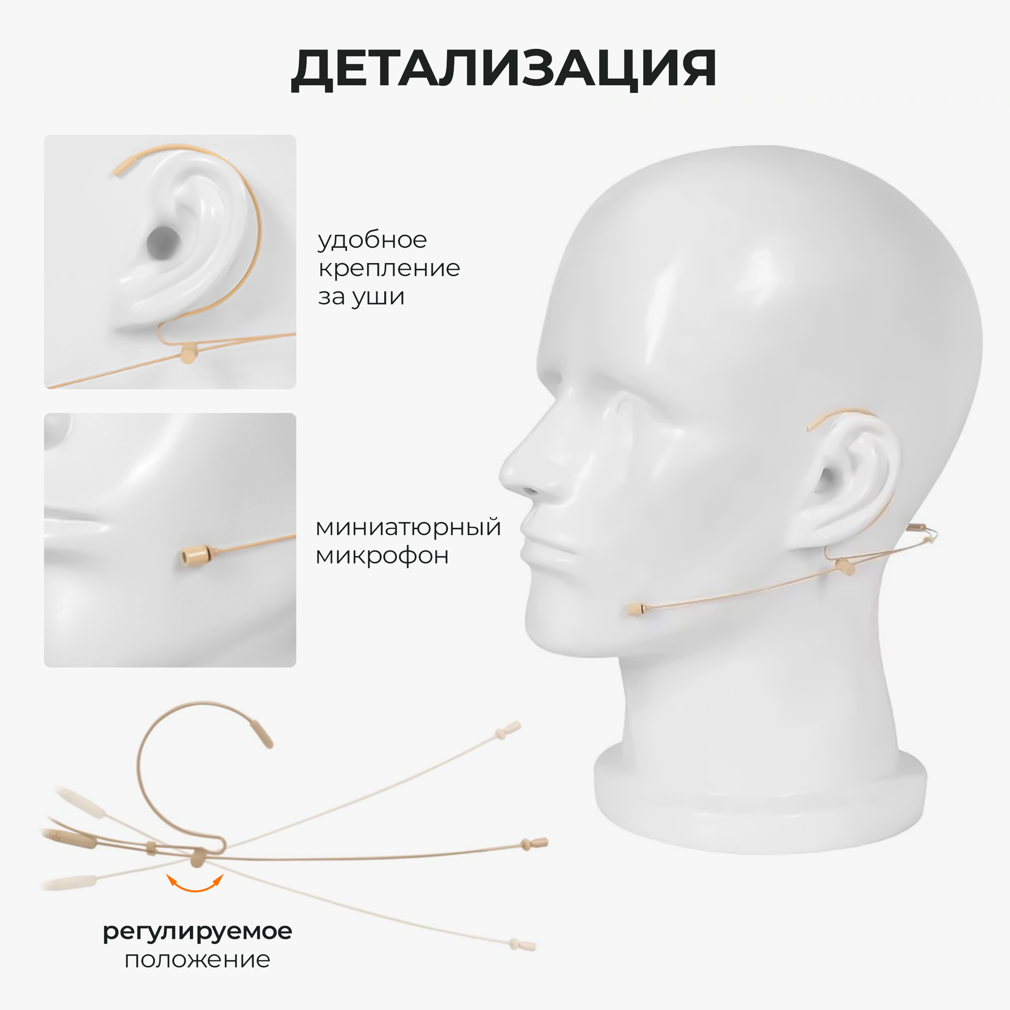 | Дополнительная информация | Головной микрофон работает только в комплекте с поясным передатчиком от беспроводной микрофонной системы |
