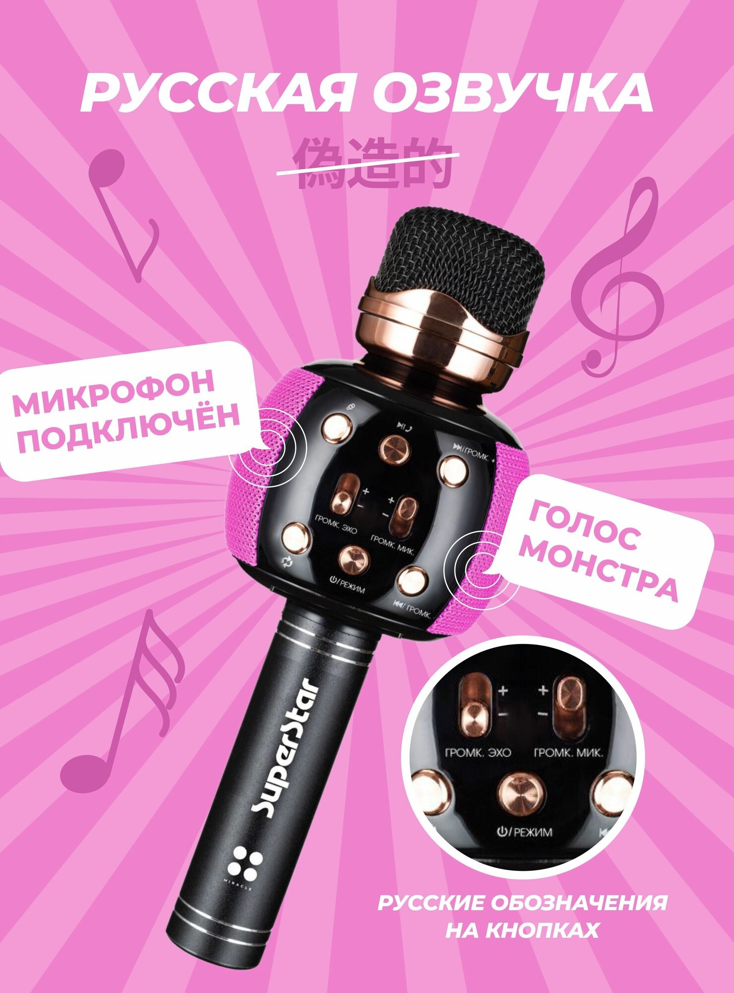 10 цен на Караоке микрофон розовый с колонкой беспроводной